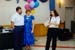 At the end of the ceremony, I snatched the microphone and surprised Lynn with a new pair of wedding rings, just like the original ones. Our original rings had fallen on hard times; mine had shrunk - yeah right - and the pattern had been smoothed out over the ears from use, Lynn's had been disfigured by a disreputable jeweler while trying to resize it. I caught her completely by surprise, as evidenced by the photos.