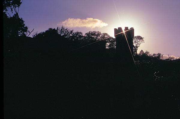 Along the southern side of the Ring of Kerry in Ireland, there is an abandoned castle up on the hillside. It's since been fenced in but in 1973 it was open and free to explore. This sunset through the turret was one of many great shots I found that day.
