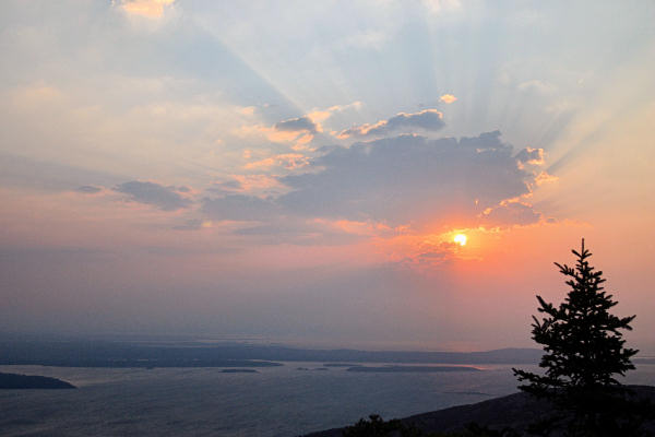 The very next day I was back on the mountain to catch the sunrise. At certain times of the year (July being one of them), the Cadillac Mountain peak (where I was) is the first land in the US that the sun's rays touch. This lone pine tree stood sentinel to watch for the coming of those rays. It was blowing a gale that morning, so I had to crank up the shutter speed to minimize the wind effect and to catch the tree without a blur.
