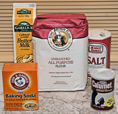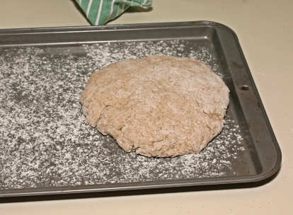 Mix dry ingredients. Add milk and stir to make soft dough. Knead 1 minute on lightly floured surface. Shape into 8-inch round loaf. Either place on greased or floured cookie sheet or in an 8-inch round pan. Cut a cross on top and bake for 35-40 minutes at 350 degrees. Cool on a rack a bit. Cut loaf in half, then slice pieces from each half. Serve warm. Variations: add a handful of raisins or caraway seeds or whatever else you'd like. |