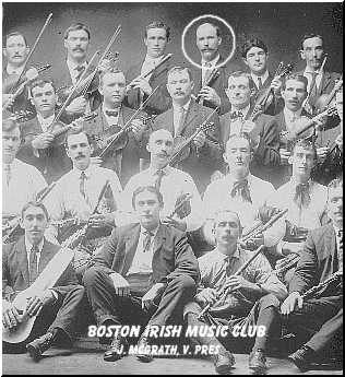 My maternal grandfather, John Michael MCGRATH, was born in Ardfert, County Kerry, Ireland, on April 29, 1871, and came to America in 1897. He lived in Boston and worked as a freight clerk for the Boston and Maine Railroad for 37 years. He married the former Elizabeth Mary BUTTIMER in Boston, on November 27, 1907. They moved to Woburn sometime between 1908 (birth of 1st child) and 1911 (birth of 2nd child). John was active in the Boston area Irish Music scene, and served for a time as the Vice-President of the Boston Irish Music Club. He's shown here in the back row.