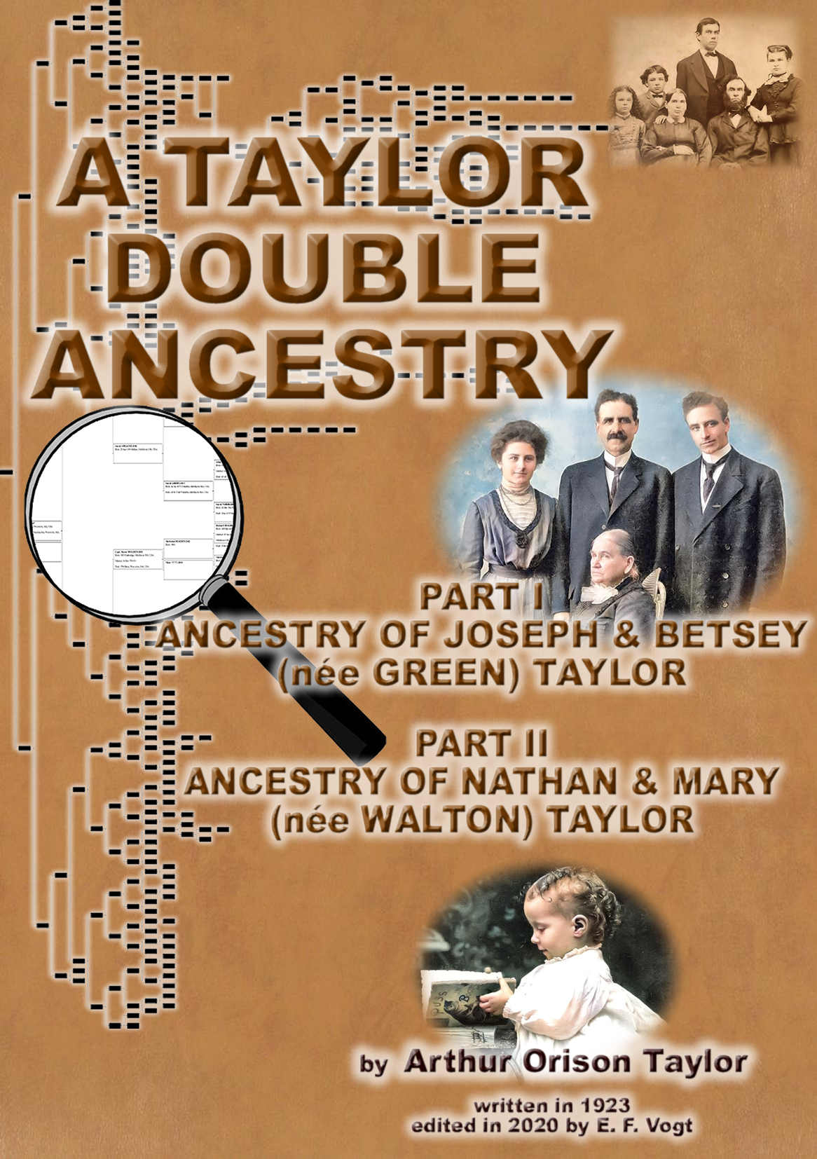 Eastman's Online Genealogy Newsletter ™ says of A Taylor Double Ancestry : "… painstakingly edited through all the material, [they] checked as many sources as they could… All the book's content is of the author's 1923 work, none of the editors' own, except for the editing and footnoting. So the information reflects work done in 1923, and backwards from that date… The fruition of the Vogts' work honors the original author and contributes to an enduring Taylor legacy. " [https://tinyurl.com/e964k5bj]