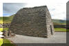 Information about Gallarus Oratory: Gallarus Oratory is one of the finest examples of an early Christian Church to be found in Ireland. As early as the 6th century monastic settlements were built in remote areas of Ireland. This small oratory, dating from 800 AD, and built without mortar, uses corbel vaulting (a technique developed by Neolithic tomb-makers). It is dimly lit, with only a tiny window opposite the entrance door. Shaped like an upturned boat, this miniature church overlooks the harbour at Smerwick on the Dingle Peninsula. It is built with the stones being laid at a slight angle, lower on the outside than on the inside allowing rainwater to run off. |