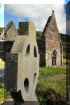 After walking around Staigue Fort for a while and investigating all we could find, we stopped for “take-away” coffee at the Staigue Fort coffee shop, and headed back out on the road. It was getting late in the day, so the next stop was Kenmare to visit Uncle Jerry (Canon Right Reverend Jeremiah Aloysius)’s tomb and to find some supper. The tomb as not weathered the years well in my opinion, and looks much older than the 38 years it is. We ate dinner in the Wander Inn Pub – great steak – and bought some CDs for the car at Quills, including the new live Planxty 2004 CD.